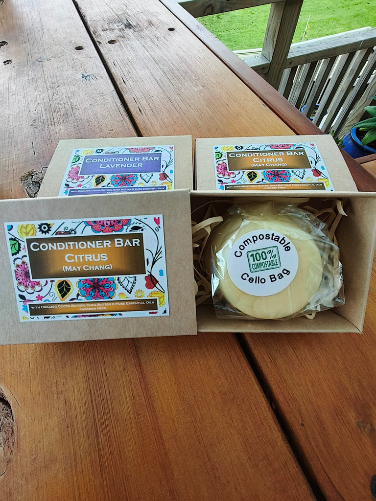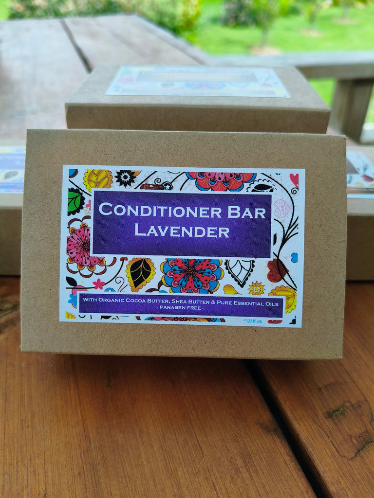Conditioner bars are exciting! They are a highly concentrated bar to nourish your hair, and lovingly handmade by us with ingredients that can help heal, moisturise, regenerate and strengthen your hair. Our bars are designed for use under wet conditions such as in the shower after you've shampooed. However you can also use it on towel-dried damp or dry hair to style your hair, or help tame fly away hair, dry ends, as well as to de-tangle.Simply apply the conditioner bar directly onto your wet hair. Gently stroke over your hair, starting at the top and working down toward the ends. Leave it in for a few minutes to maximise the nourishment. Rinse out. For best results and so the bar lasts for the longest time, keep the bar dry in between uses.